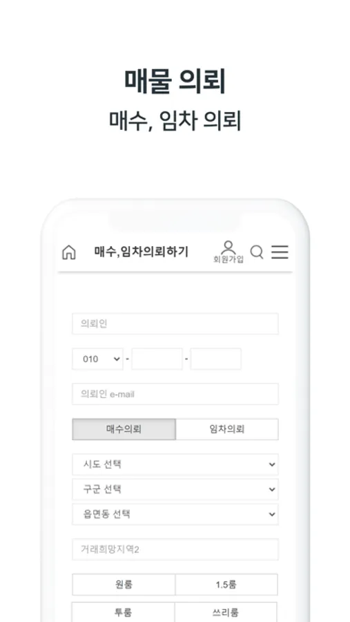 추정부동산가액, 유동인구분석, 상권매출분석, 매물검색, 매물의뢰,