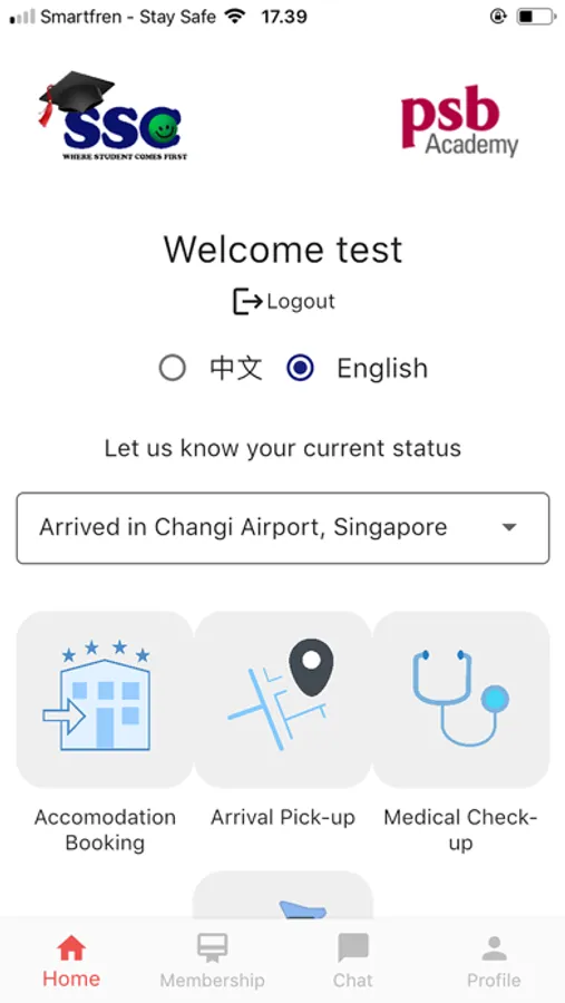 SSC Student is a student app for managing accommodation booking, airport pickup, profiles, and current status.