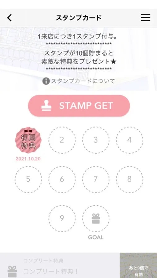 ご来店でスタンププレゼントいたします。