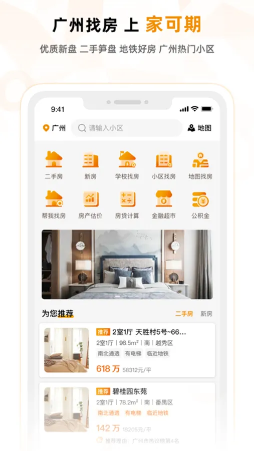 家可期是由广州住房公积金管理中心发起,广州住房置业融资担保有限公司建设运营,涵盖一手房、二手房、租房、长租公寓、金融服务等信息,并提供房产评估、公积金申请、房屋过户等便民服务。