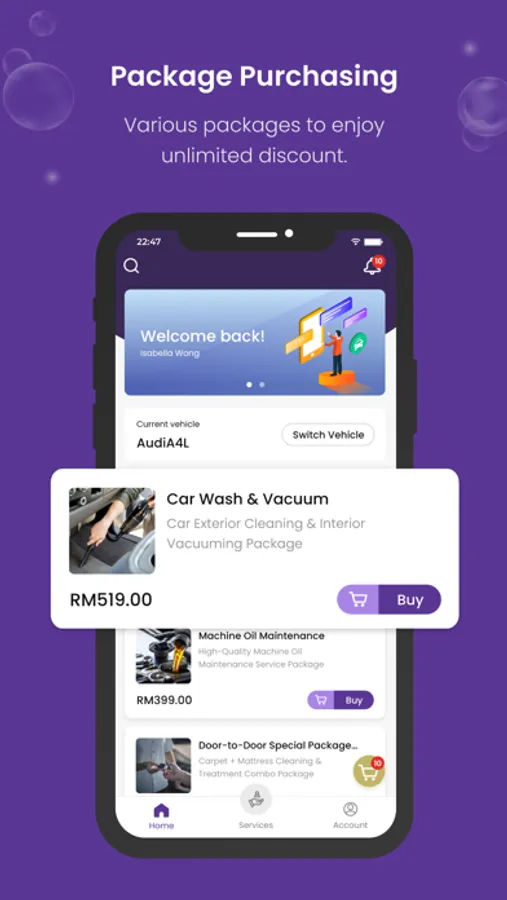 At your convenience, you may book our services through the app with your preferred booking time, location and services.