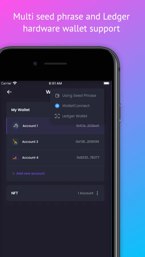 - Create many wallets - Multi seed phrase support.