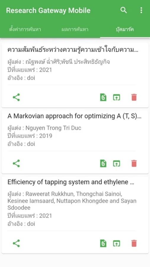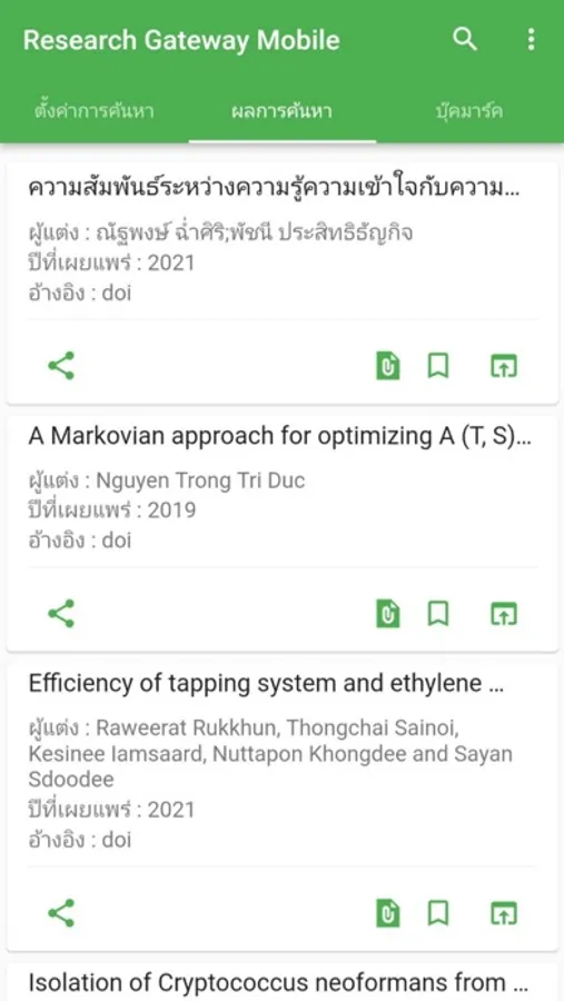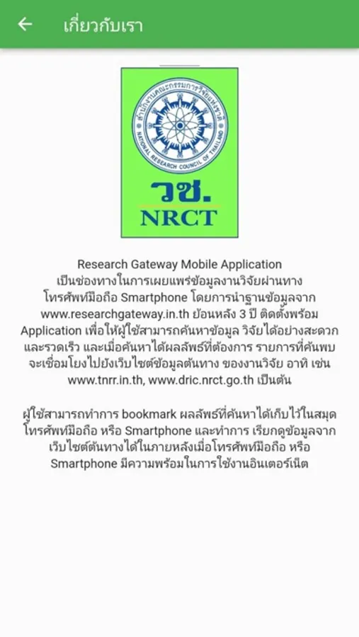 เป็นช่องทางในการเผยแพร่ข้อมูลงานวิจัยผ่านทางโทรศัพท์มือถือ Smartphone โดยการนำฐานข้อมูลจาก www.researchgateway.in.th ย้อนหลัง 3 ปี ติดตั้งพร้อม Application เพื่อให้ผู้ใช้สามารถค้นหาข้อมูล วิจัยได้อย่างสะดวกและรวดเร็ว และเมื่อค้นหาได้ผลลัพธ์ที่ต้องการ รายการที่ค้นพบจะเชื่อมโยงไปยังเว็บไซต์ข้อมูลต้นทาง ของงานวิจัย อาทิ เช่น www.tnrr.in.th, www.dric.nrct.go.th เป็นต้น