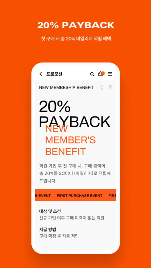 회원 가입 후 첫 구매 시, 최종 구매액의 총 20% 적립 혜택