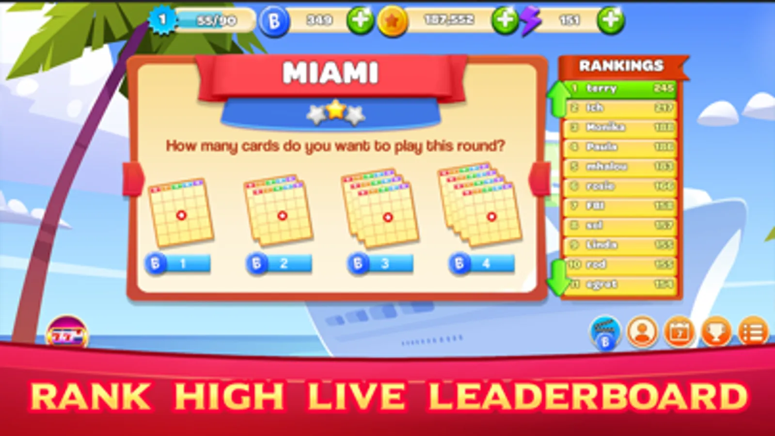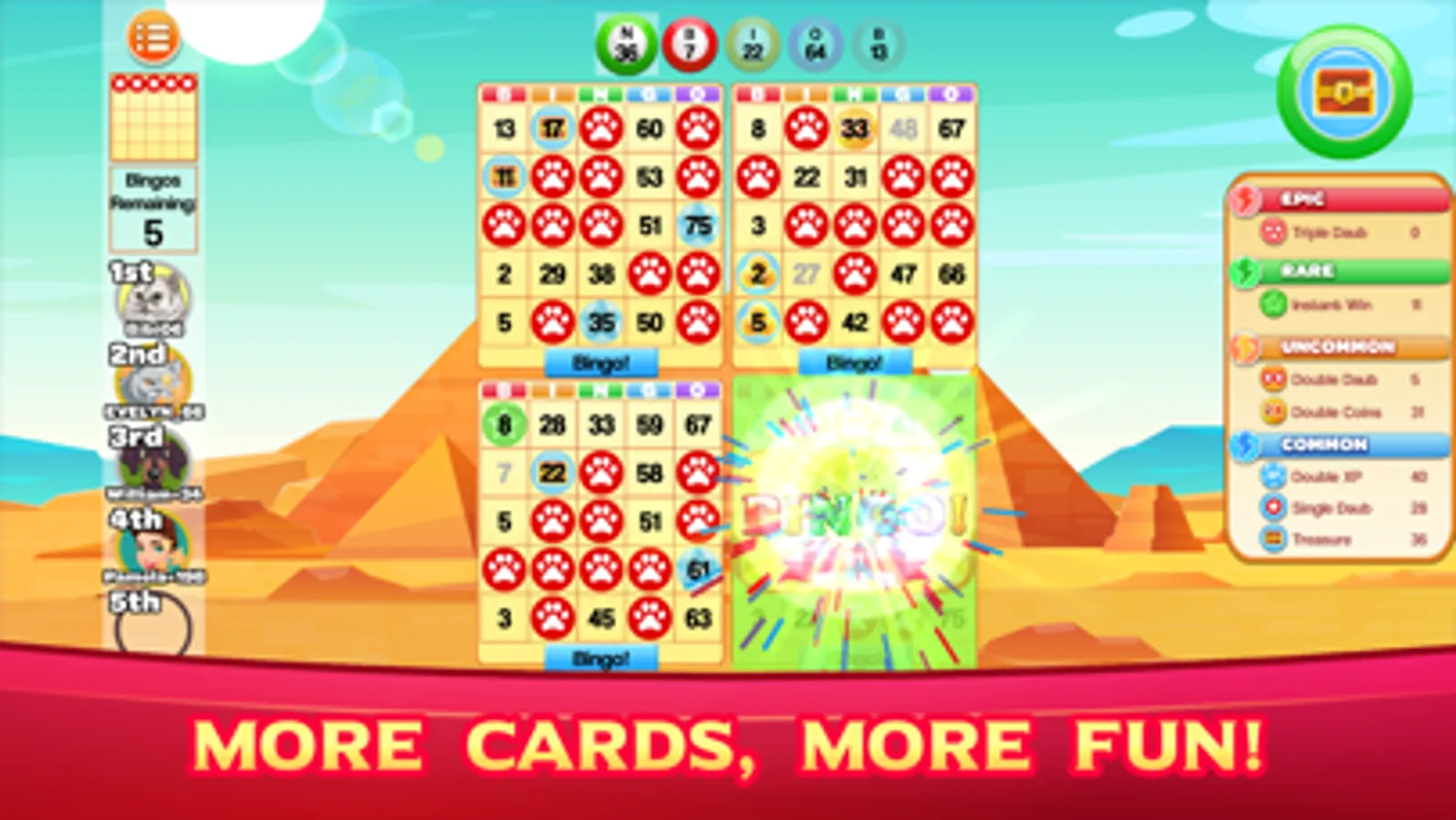 - Compete for top 5 online leaderboard bingo scores!
