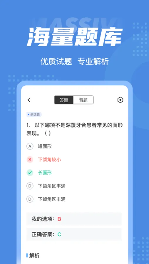 口腔修复体制作工题库新增搜题功能,口腔修复体制作工考试中的疑问一搜便知,更支持语音和拍照搜题。