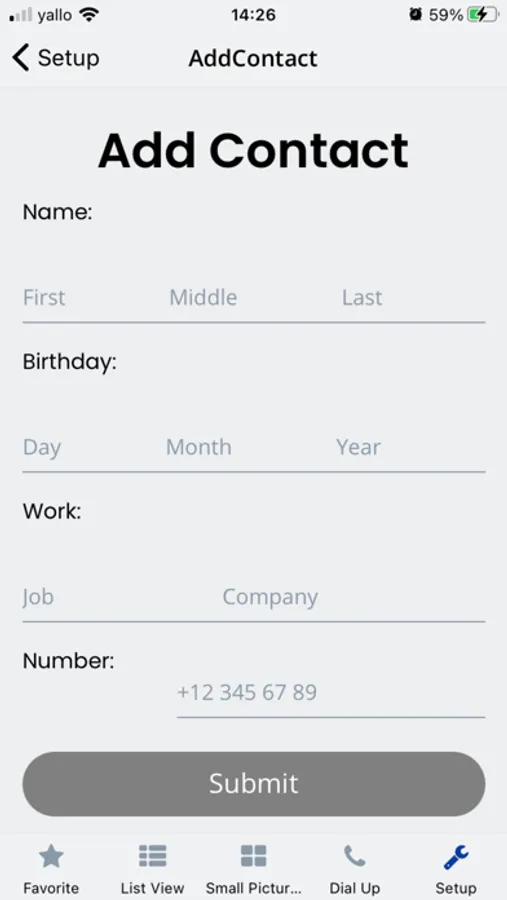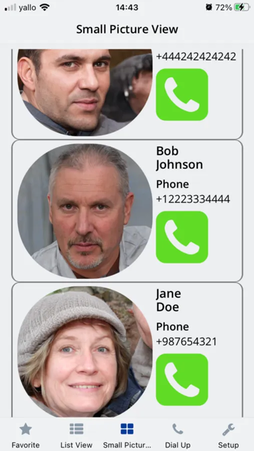 Based on your already used address-book of your device the app supports you with an overview of your most frequent contacts. You can chose different images for these persons as the thumbnail-image and the dial button has a comfortable size. After importing your contacts you define the ones you want to see in the list. The list offers two sizes with smaller or larger pics. For people with visual impairment a full-screen-image is as well supported.