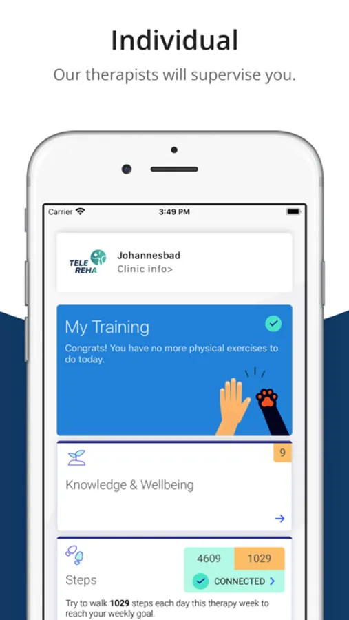 your results. Connect your fitness wearables or smartwatch to the Johannesbad Tele Reha app through Apple HealthKit and stay informed on your activity goals.