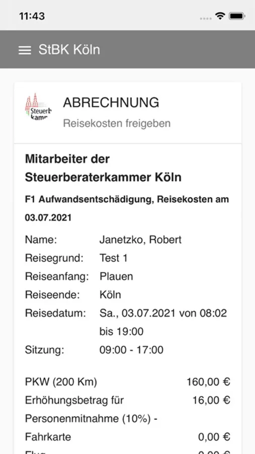 Die Reisekosten-App der Steuerberaterkammer Köln ermöglicht registrierten Benutzern die schnelle und einfache Erfassung ihrer Reisekosten-Abrechnung direkt auf dem iPhone oder iPad.