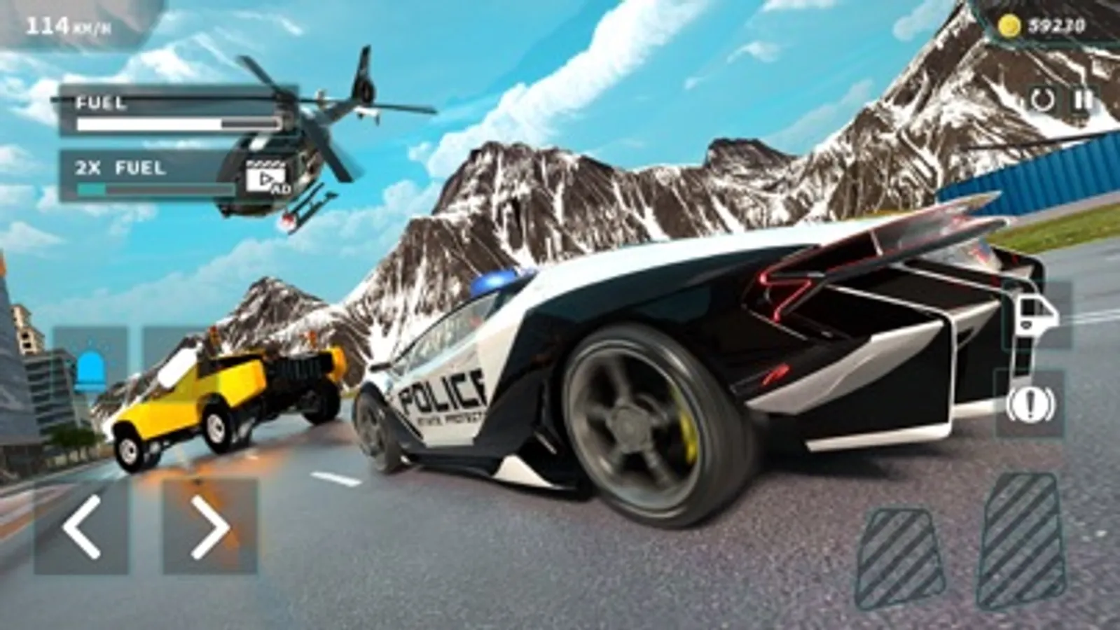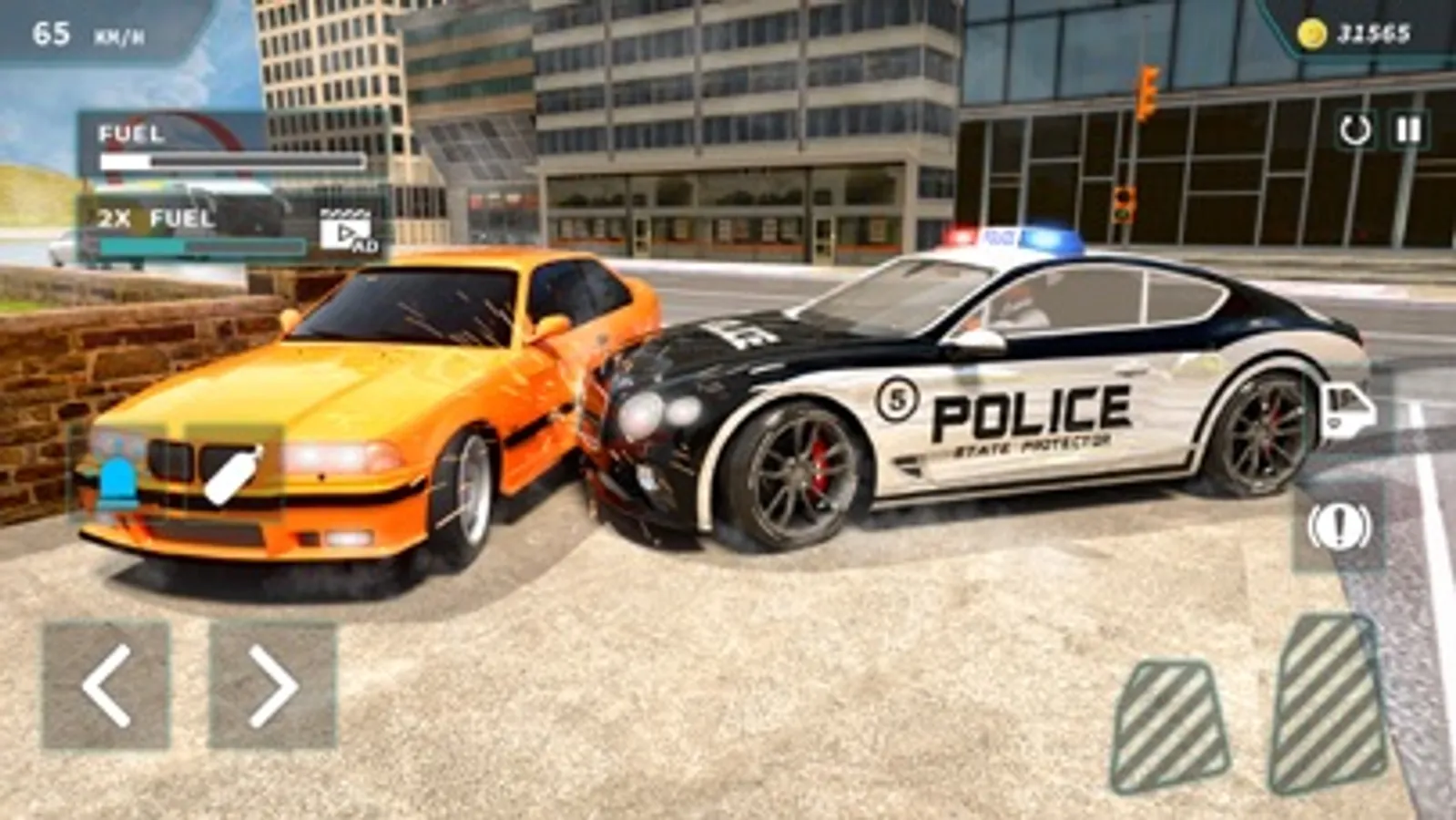 While driving a police car, you also have a NOS button on the screen, which gives your car a speed boost while chasing thieves in missions, making the game full of fun and joy.