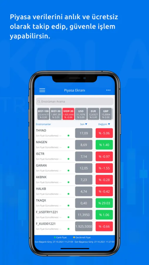 • Piyasa verilerine anlık ve ücretsiz olarak erişirsin.