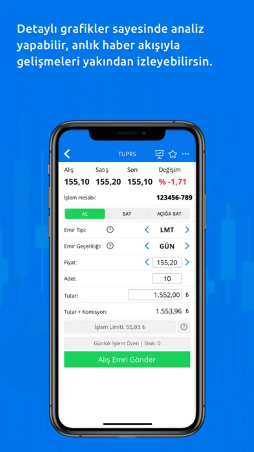 • Emir özelliği ile fiyat takibi yapmana gerek kalmadan istediğin fiyattan işlemlerini gerçekleştirebilirsin.