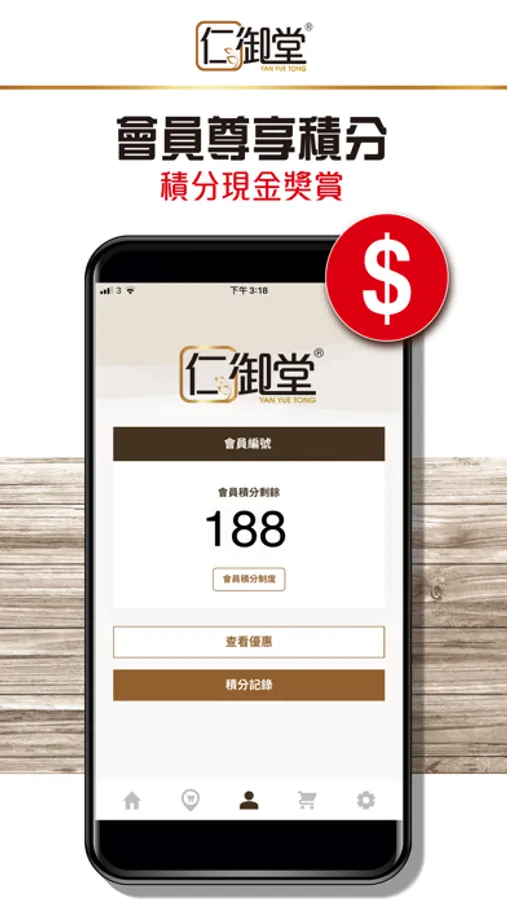 • 每次購物,每港幣$1=1分,憑積分當錢使用