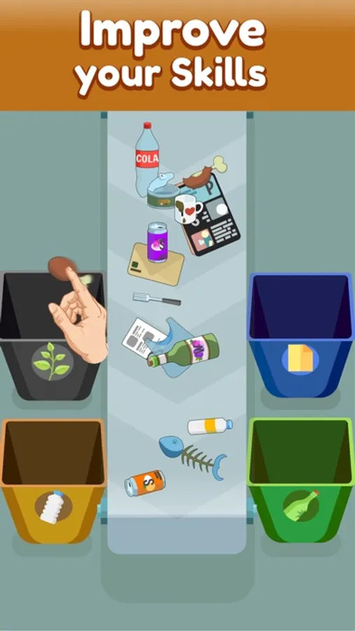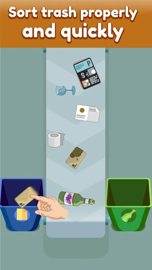 Tap on objects at the conveyor, choose the correct containers, earn rewards and finish factory construction to help the ecology of your city.