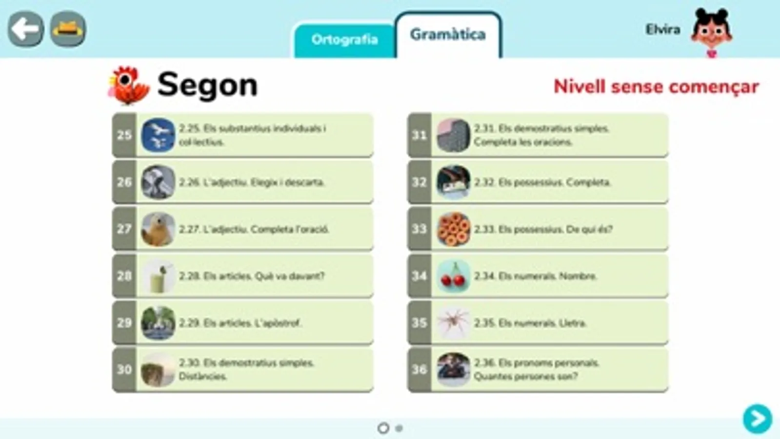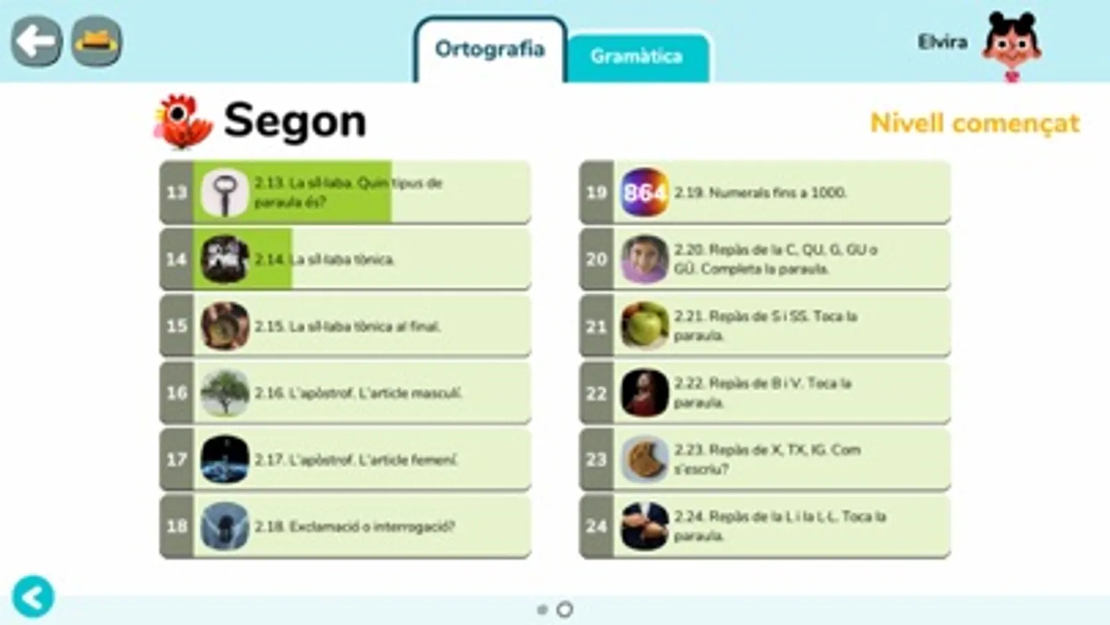 Cadascun dels 6 cursos incorpora 24 activitats interactives d’ortografia i 24 de gramàtica i lexicografia, per a practicar i assimilar els continguts de l’assignatura. Quan és necessari, els exercicis inclouen pistes amb explicacions, per a entendre com es resol l’activitat.