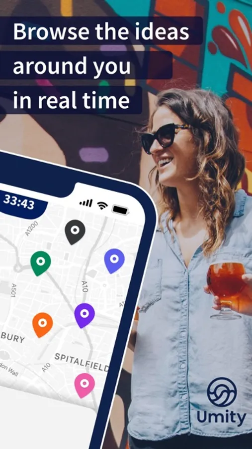 Any idea, any place, any time. Umity is a real-time interactive map of social experiences, ideas and events waiting to be discovered. Whether you’re looking for someone to go for a walk in a park, play tennis, or get a pint with - Umity is the place for you.