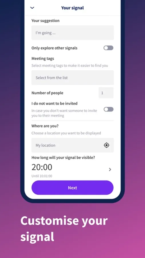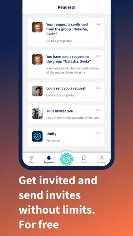 Don't waste time swiping and waiting for replies, see and send invites directly to anyone on the map. Meeting someone through Umity can take as little as 5 minutes! Customise your idea with tags, duration, amount of people, location and more. Chat, meet and have fun!