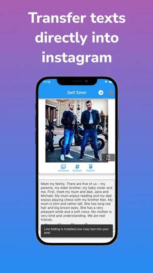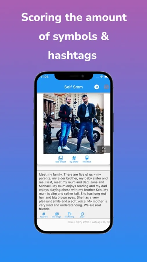 With this application, you greatly simplify your work for writing posts, editing photos, selecting hashtags, etc.