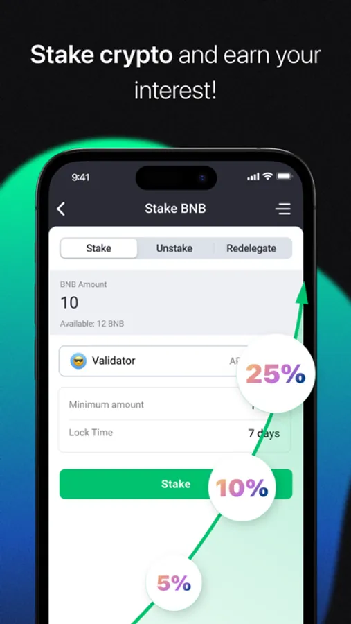 Let your crypto work for you. Stake and earn rewards on assets like ADA, TRX, ATOM, XTZ, SOL, BNB, and more.