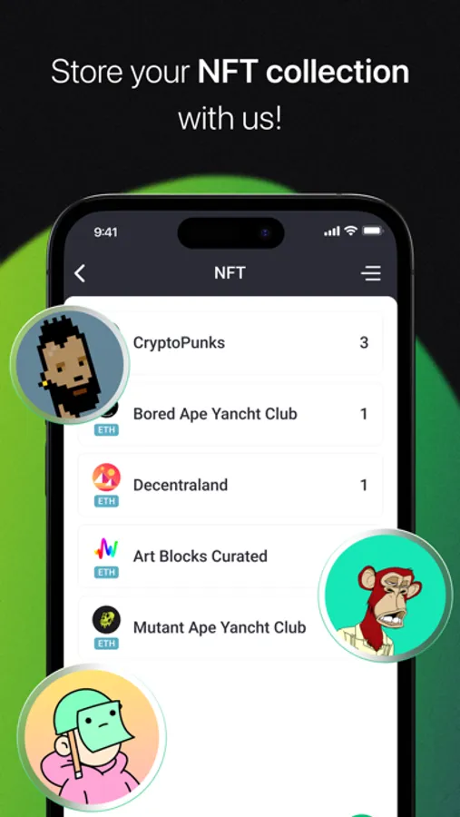 Store any tokens on 7 networks, including Ethereum (ERC-20), BNB Smart Chain (BSC), and Solana. Ethereum and Solana NFTs are also supported!