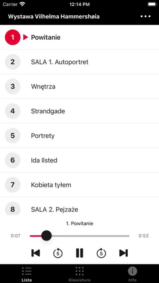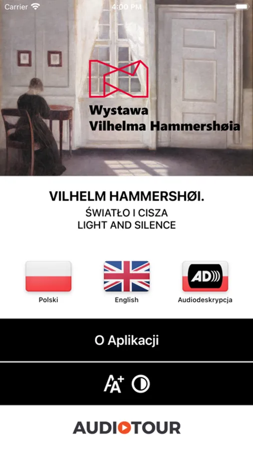 Aplikacja jest audioprzewodnikiem po wystawie twórczości Vilhelma Hammershøia. Przybliża nam życiorys oraz niepowtarzalny styl duńskiego malarza.