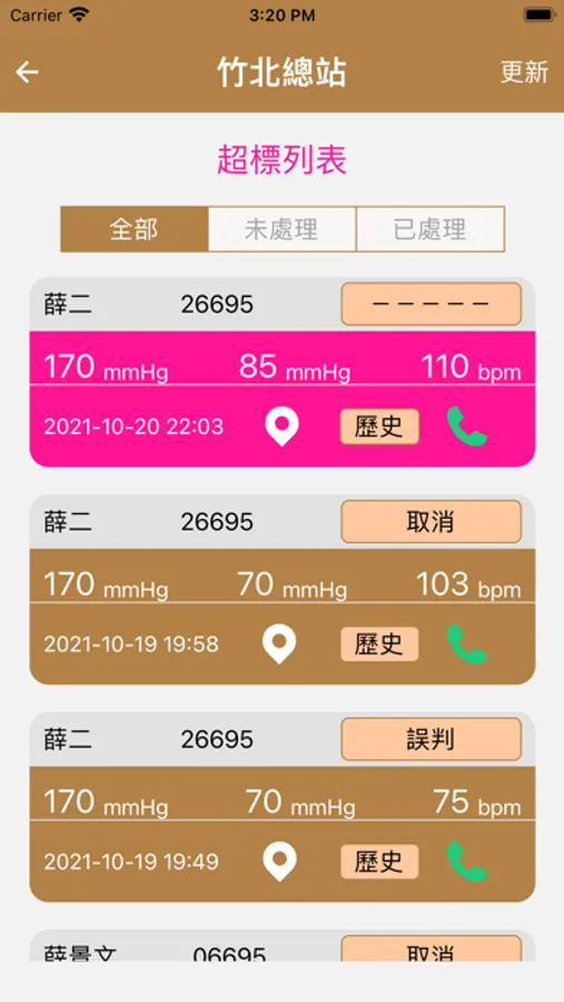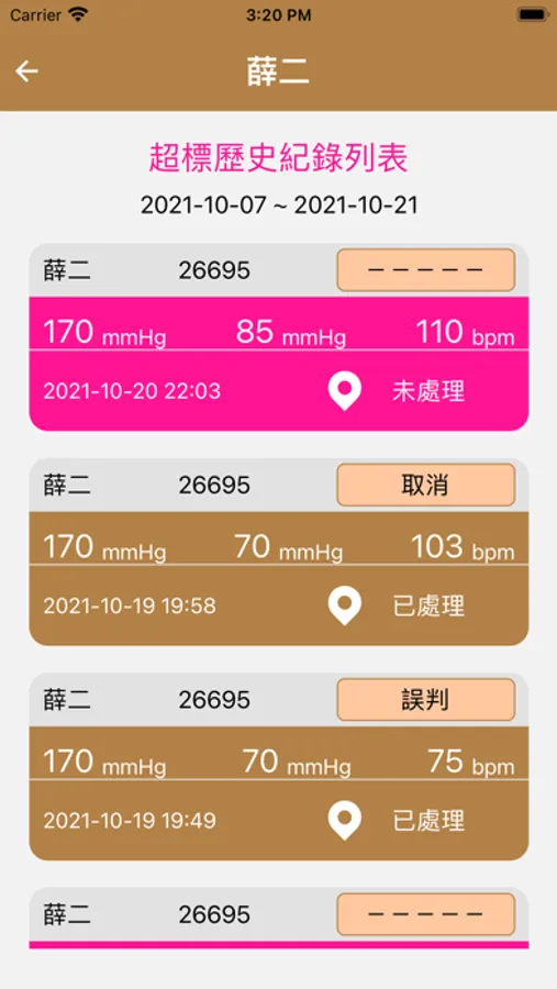 4. 對超標或異常者,可以透過APP的歷史功能,列出過去的使用紀錄與狀態,可以從過去的結果來做異常評判的參考