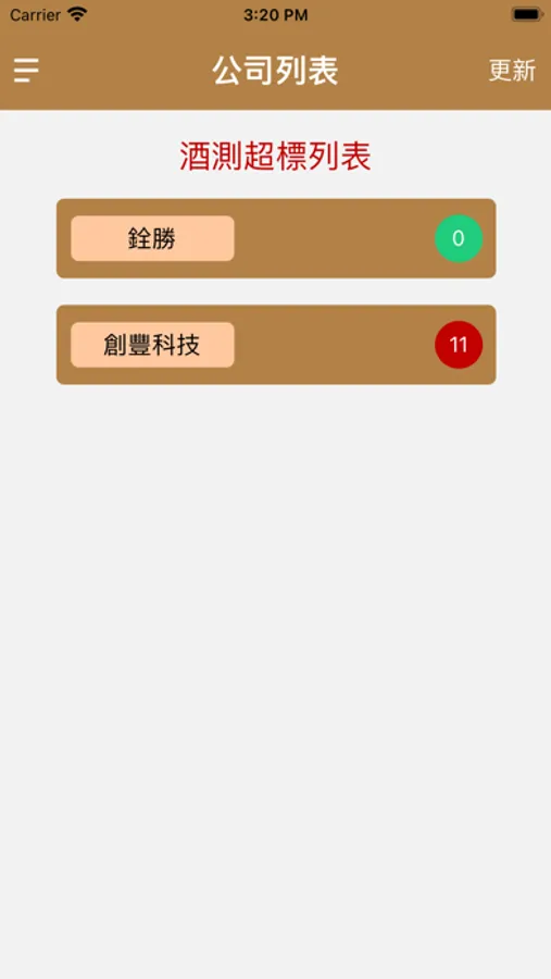1. 當酒測與血壓等超標或其他異常發生時,APP可即時顯示平台傳來的異常狀態