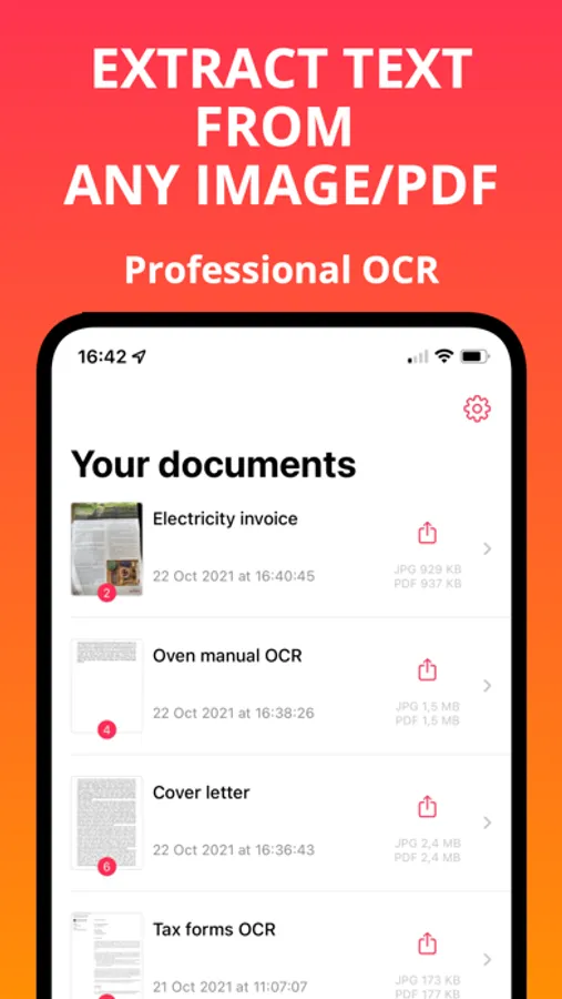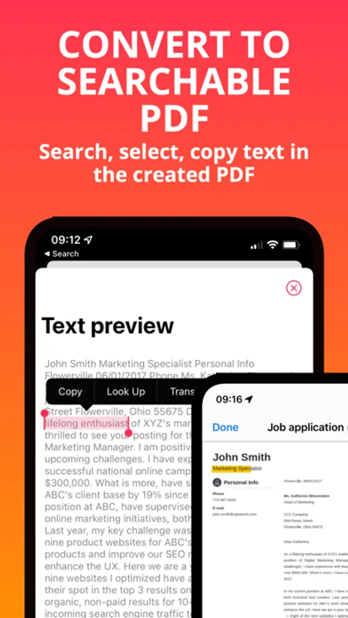 Convert any PDF / image to searchable PDF files with PDF Converter, thanks to OCR (text recognition) which supports many languages.