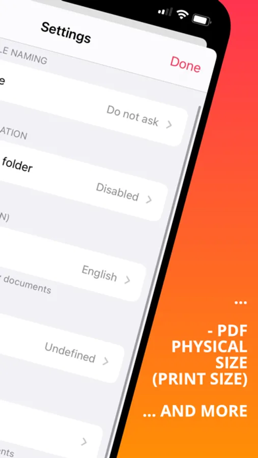 • Cloud upload: iCloud Drive/WebDAV/Dropbox/OneDrive/Google Drive/NAS/SMB/NextCloud/pCloud/Email and more...
