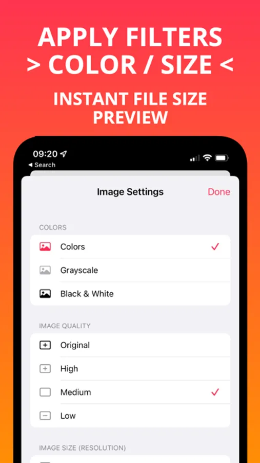 • Choose the resolution of the images