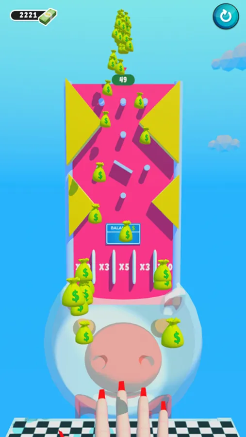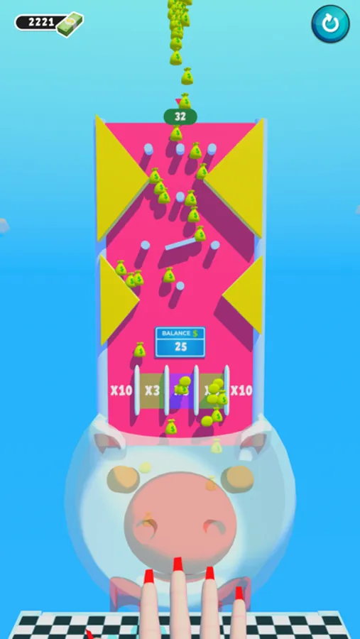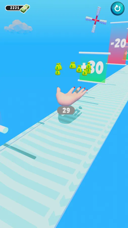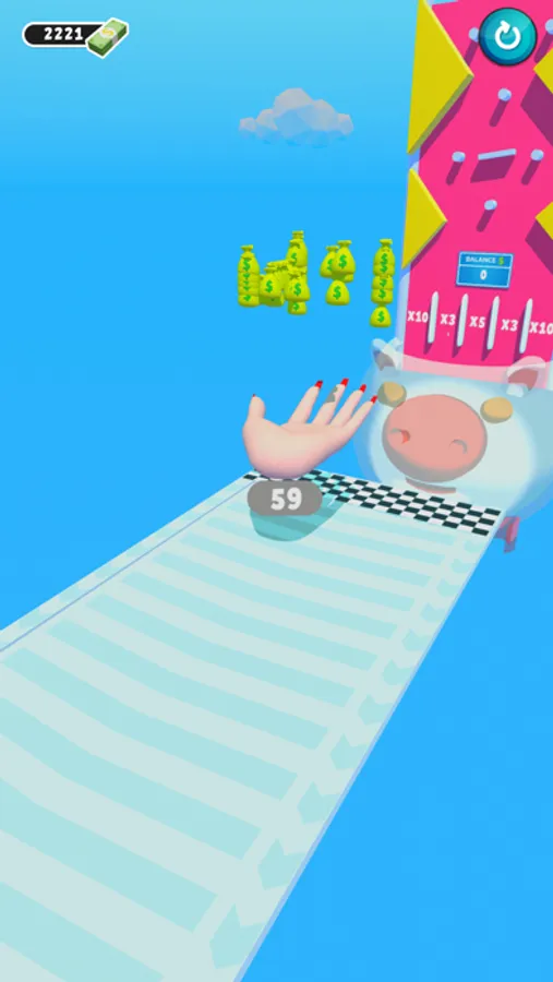 Pass through the green gates and increase the number of purses that bounce on the hand.