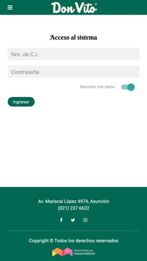 Esta aplicación es de uso privado y exclusivo para empresas que son clientes del servicio de almuerzo de Don Vito.