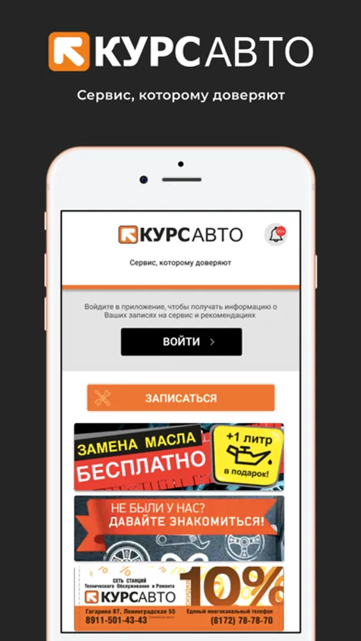 Приложение Курс Авто - запись на СТО в вашем смартфоне.