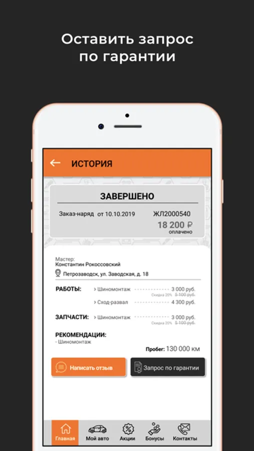 В приложении можно записаться на сервис или техническое обслуживание.