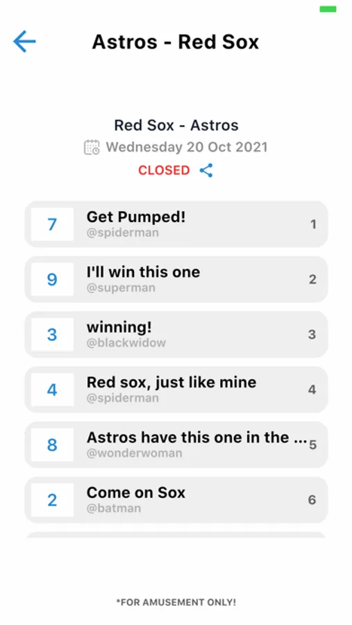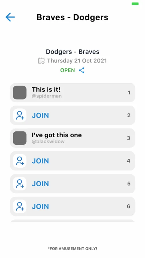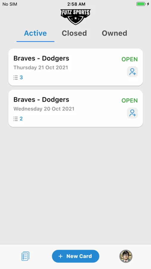 Futz Sports is an entertainment-only app that allows users to create and invite friends to join digital 10 Line Strip Cards.
