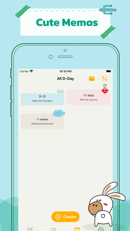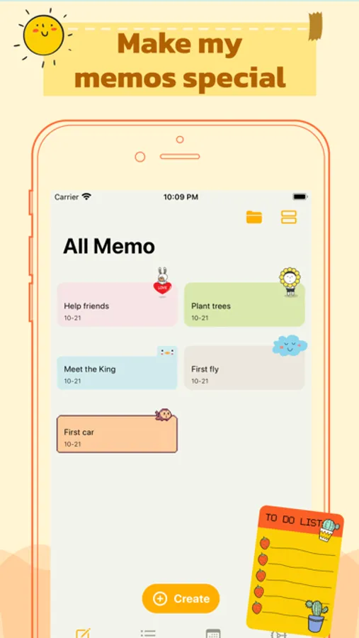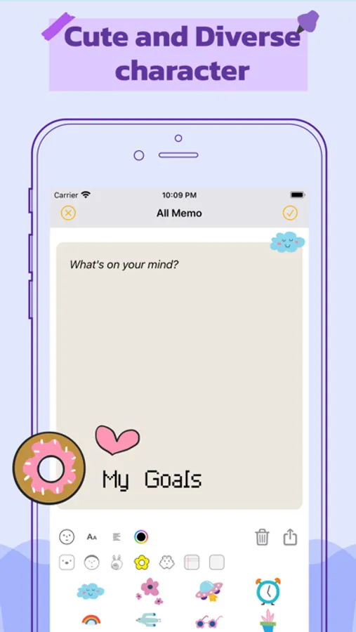 Simple notepad, Todo app. You can record fun in a variety of designs and characters