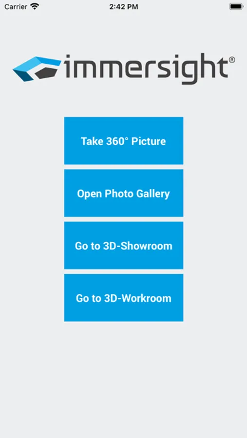 Use the services of the immersight solutions 3D-Showroom and 3D-Workroom. By using a Ricoh Theta 360° camera this app can take 360°-photos.