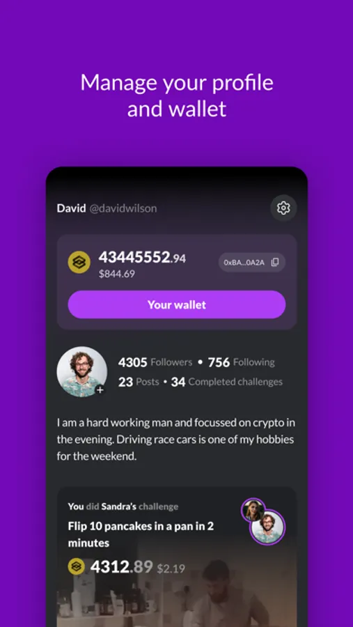 Challenge, upload your proof and earn SBLX-tokens. SocialBlox offers a revolutionary way to interact with others. Challenge your friends or other people in the community to do exciting things. Like going bungee jumping, winning a game of FIFA or helping someone move. Our blockchain solution enables new trust and ways to interact.