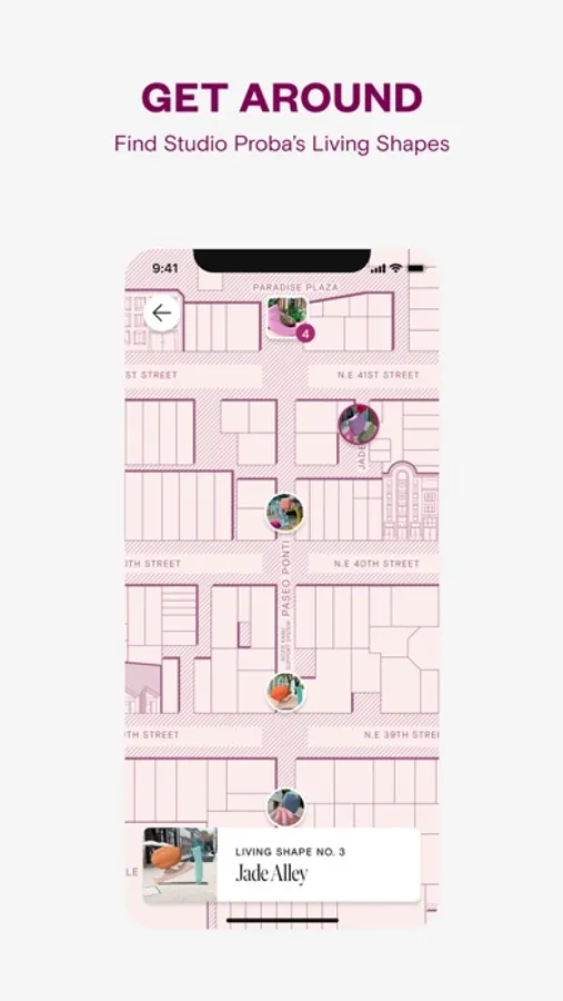 Navigate your way around the district and find Studio Proba’s Living Shapes and other local attractions. Learn about the artwork in the app, and visit each piece in person. When you do, you can begin collecting your own shapes—then design your own!
