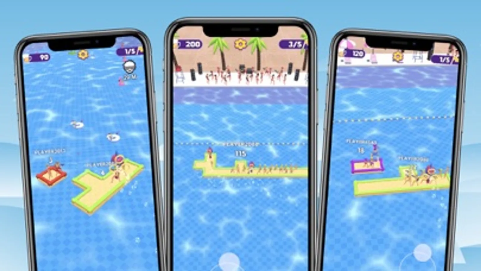 Sail your party raft in the pool and expand it by connecting and attaching raft parts! Fortify and arm your raft to the teeth with more party people, weapons and buildings that you will find in the waters to head on your opponnets and sink them!