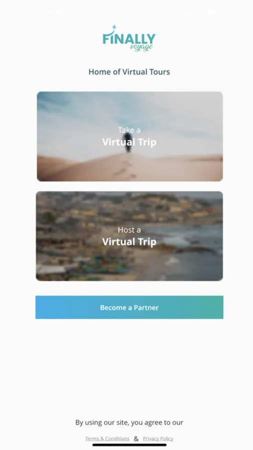 Finally Voyage is the most anticipated online travel mobile App. We take you on virtual travel tours all over the world by connecting you to trusted local hosts, allowing you to explore and discover your favorite traveling destinations from anywhere.