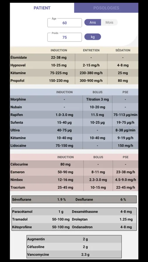 fonction rénale, interprétation des gaz du sang, calcul de posologies, IMC, pertes sanguines, etc.