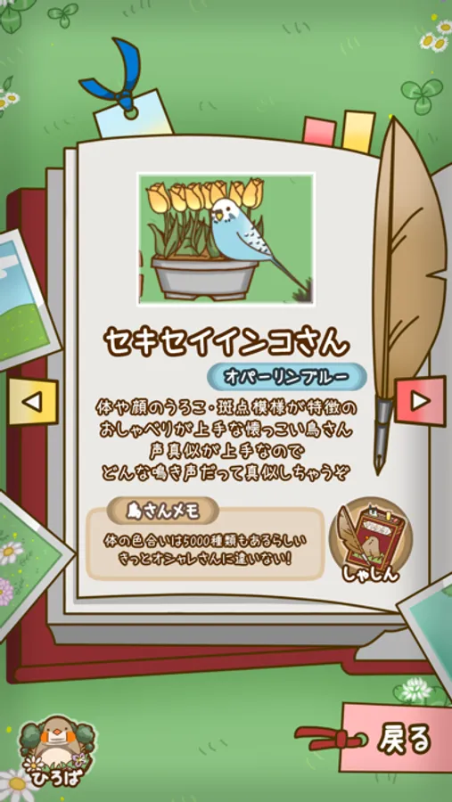 ひろばにやってきた鳥さんたちを観察して写真に撮ったり、グッズで遊んだりするのを眺めたりするのんびりしたゲームです。