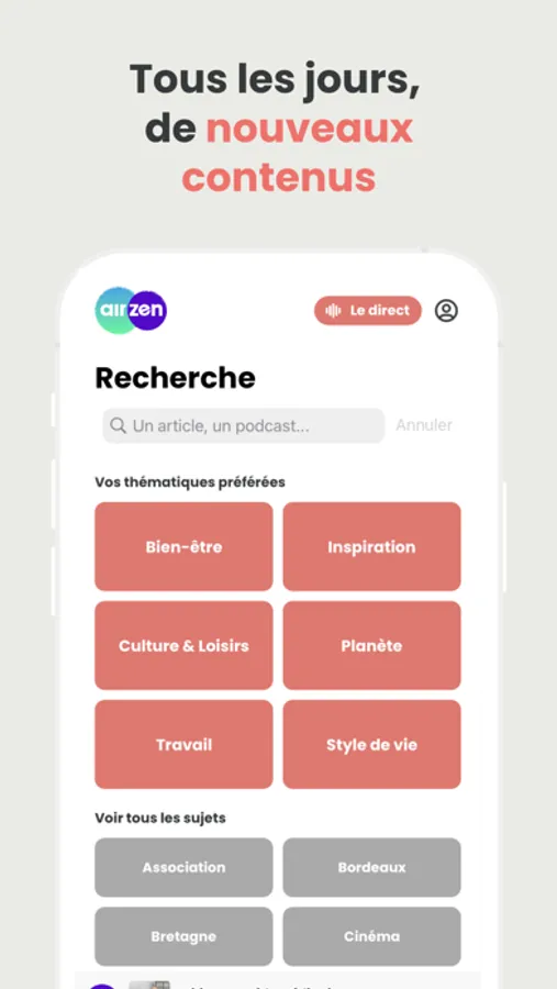 L'application AirZen vous permet d'écouter en continu le direct d'AirZen Radio, à tout moment et partout dans le monde.