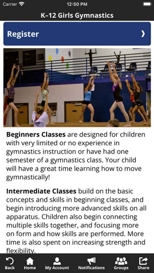 The LGA app allows you to register for classes, parties and special events at LGA. The LGA Calendar, Social Media links, and contact information are also easily accessible from the app.