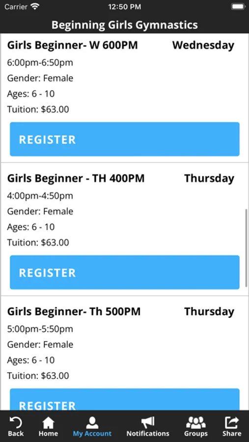 - Have a class in mind? Search by program, level, day, and time. You can register or even put yourself on a wait list.