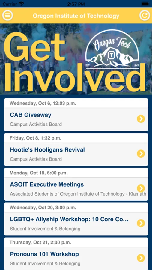 Use the Oregon Institute of Technology Events app to find out what events are happening and find out how you can get involved on campus!
