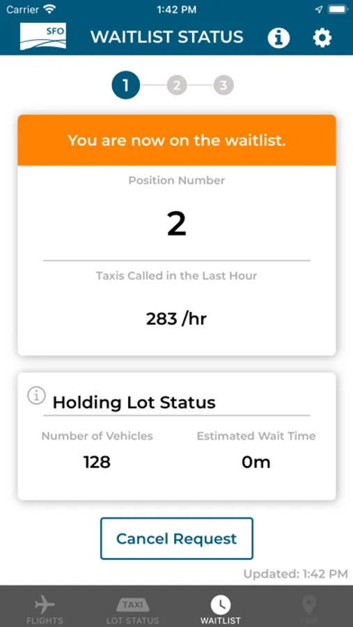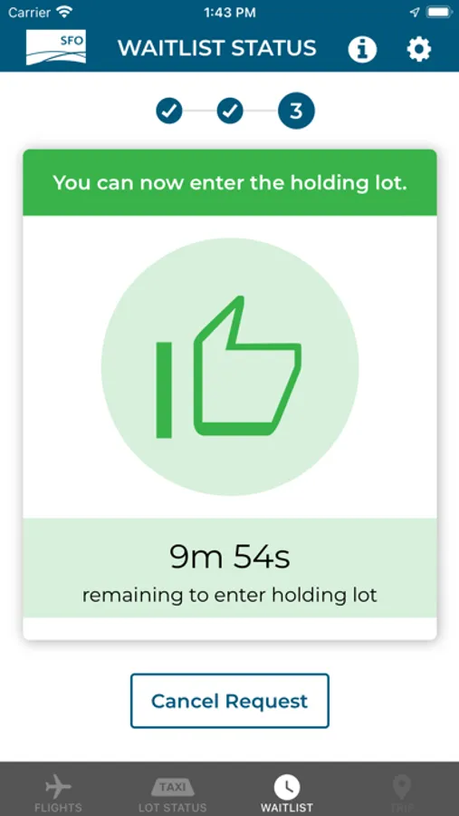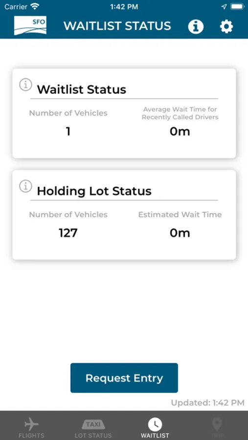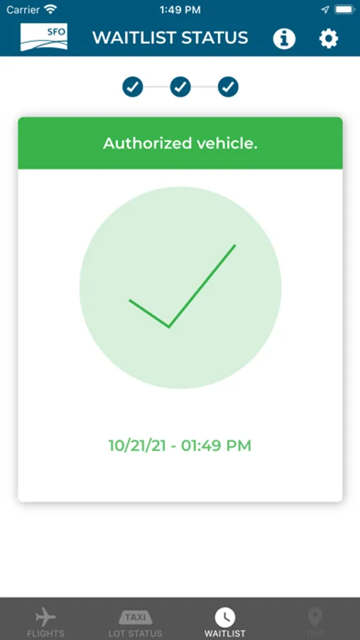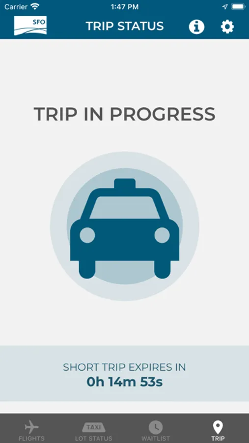 SFO's official app for San Francisco taxi drivers operating at the Airport allows drivers to request permission to pick up at SFO, wait in line virtually, and validate the taxi’s trip within the SFO “short trip” geofence after picking up a passenger at SFO.