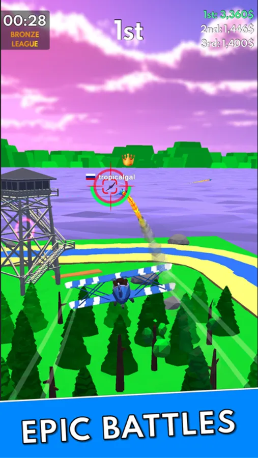 Are you ready to become the greatest pilot alive? Join the battle royale arenas and show everyone who is the best pilot ever. Pilot Royale is an action packed fighter plane battle game, which offers great 3D graphics and comprehensive intuitive swipe controls that let you shoot down your enemies in seconds. It is super simple: drag your finger over the screen to control your plane and position your crosshair over the enemy to launch mass rockets, kaboom… aim and shoot!