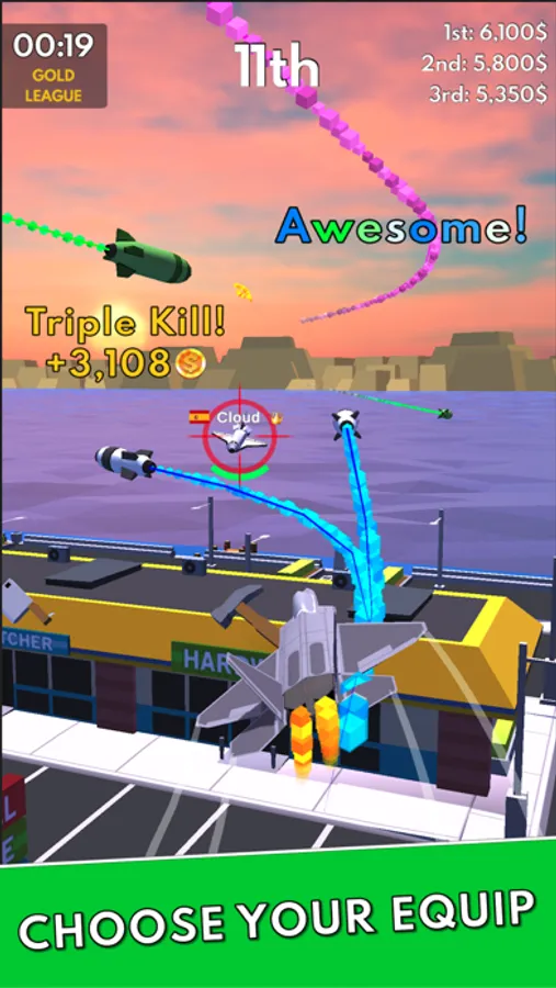 After finishing the first few games and understanding the basics, Pilot Royale invites you to join its comprehensive crew system. Become the leader of your own crew or join an existing one - invite your friends and become a legend participating in global crew wars for huge prices. Shoot as many enemies as possible from the sky and collect yellow and red stars to win the biggest possible reward for you and your crew.
